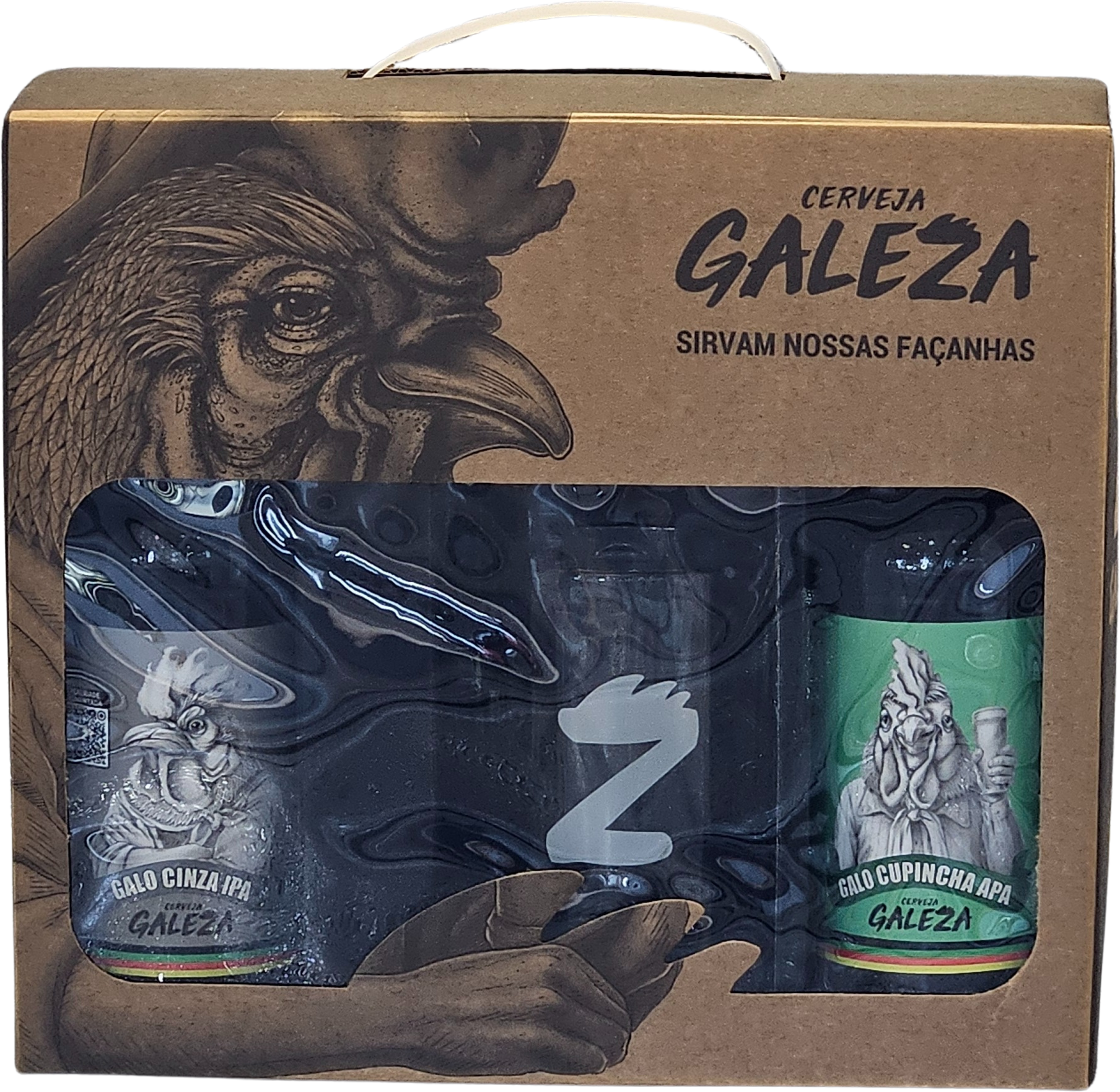 Nosso Pack Trilegal de Galezas! Kit com embalagem personalizada contendo 2 cervejas artesanais e 1 Copo Craft de Cristal: